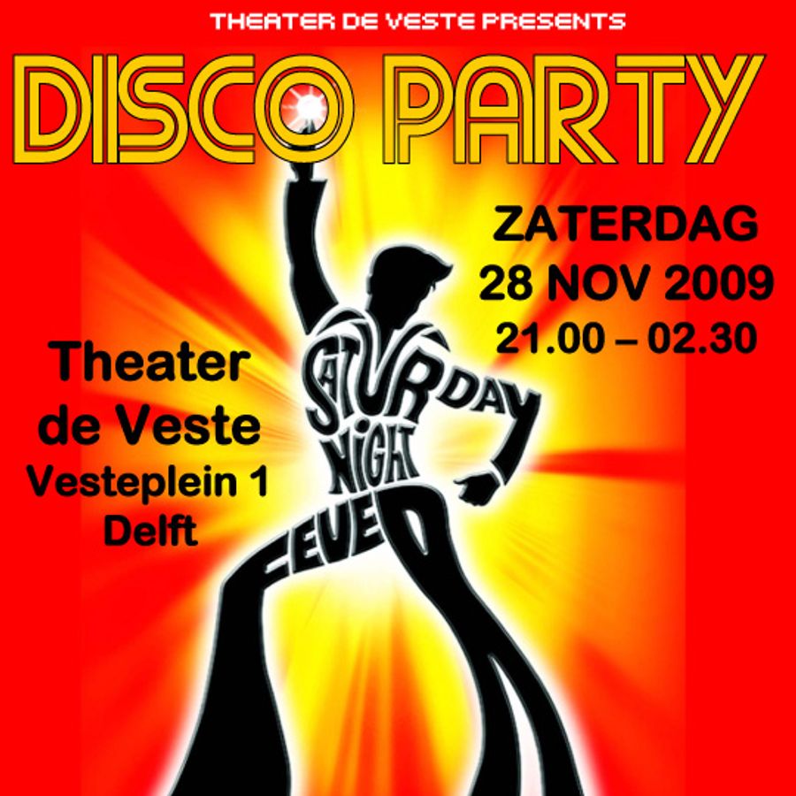 De foyer van Theater de Veste verandert op zaterdag 28 november in een disco! Je bent van harte welkom om met ons terug in de tijd te gaan van de afrokapels en wijde broekspijpen. Onder de noemer 'Saturday Night Fever' wordt van 21.00 tot 2.30 uur een knallend feest gegeven met discomuziek uit de jaren 70 en 80. Een speciaal en swingend feestje voor iedereen van 25 jaar en ouder! De muziek is in handen van de Nederlandse specialist op dit gebied: DJLuuk.NL.